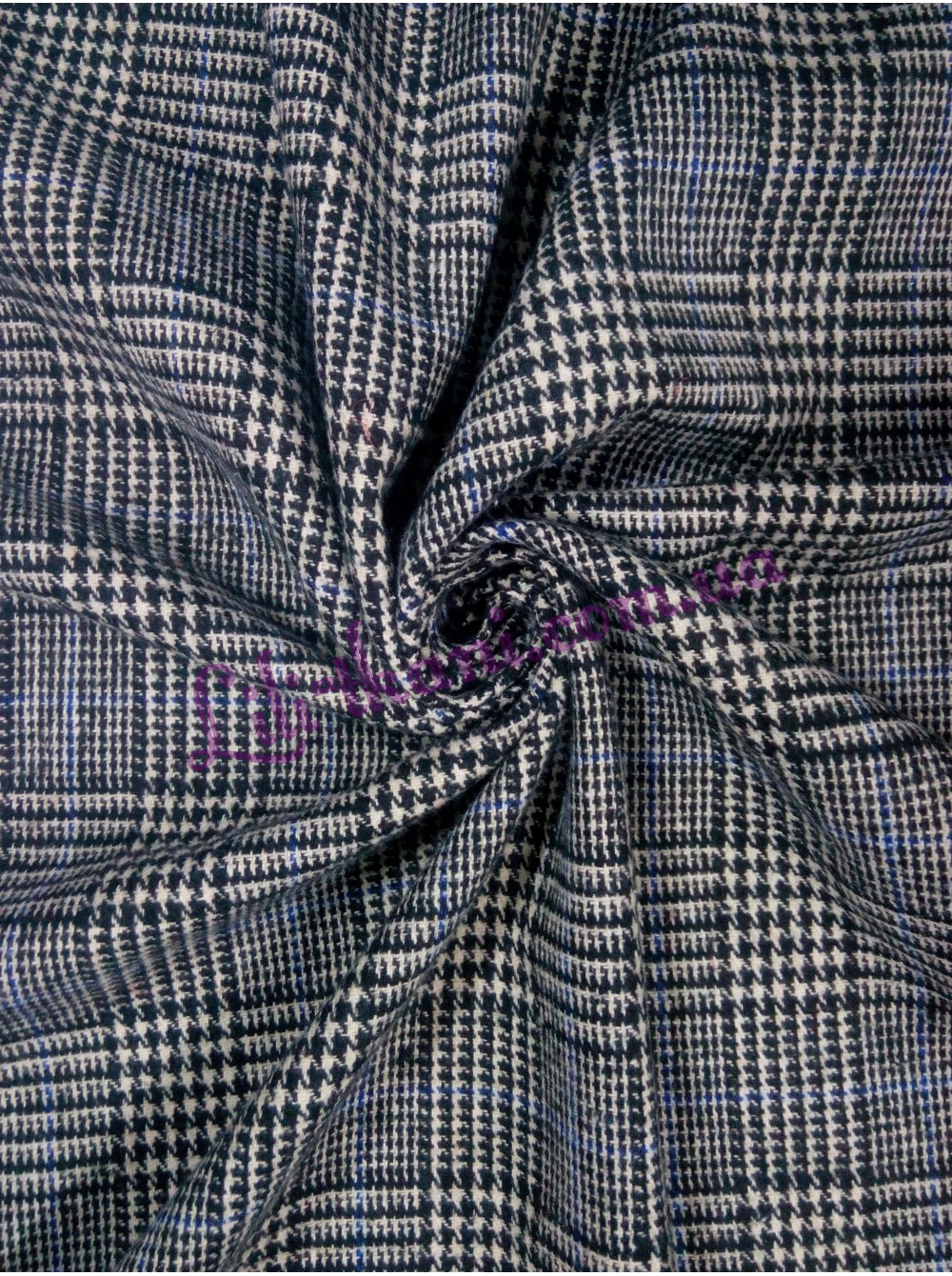Костюмна чорно-біла клітка з тонкою синьою смужкою яка надає тканині родзинки