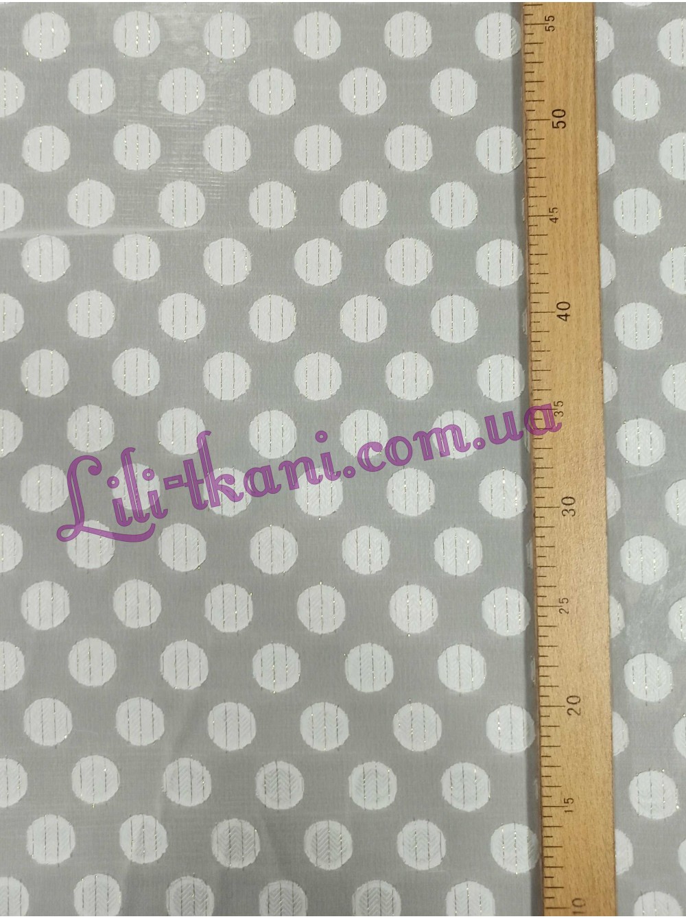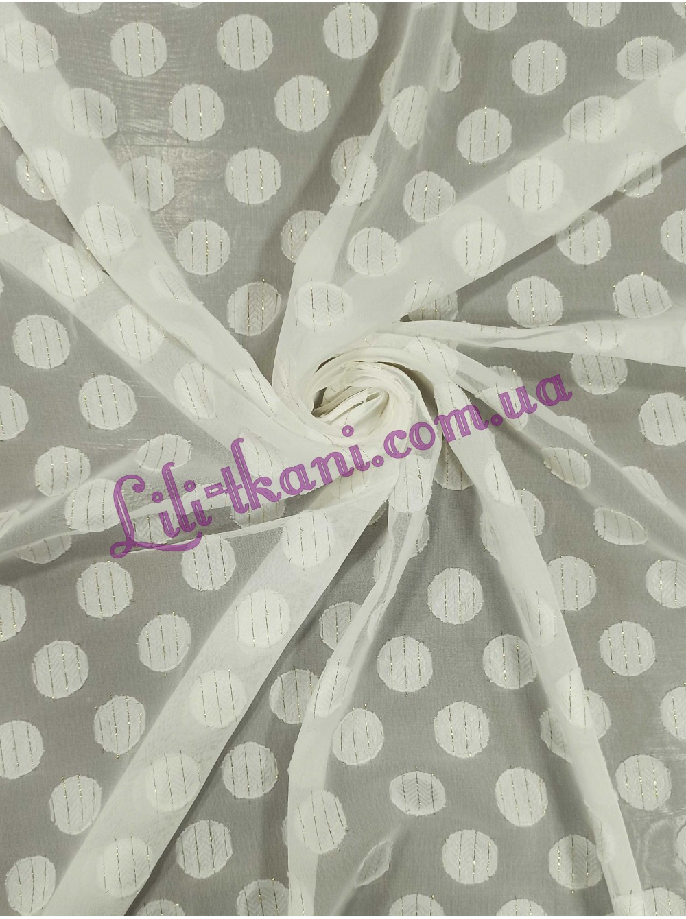 Шифон молочного кольору з люрексовою ниткою в об'ємних горохах.