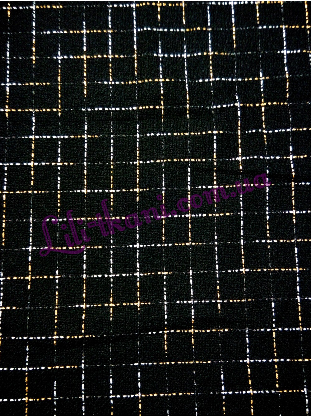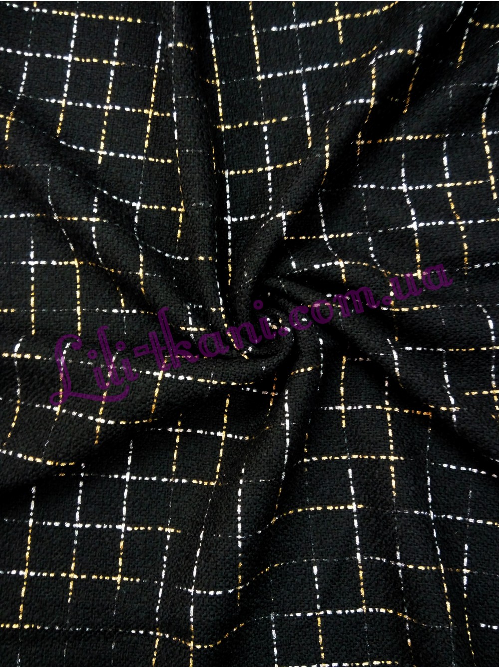 Твід чорного кольору з клітиною зробленою люрексовою ниткою хамелеоном (золото-срібло)